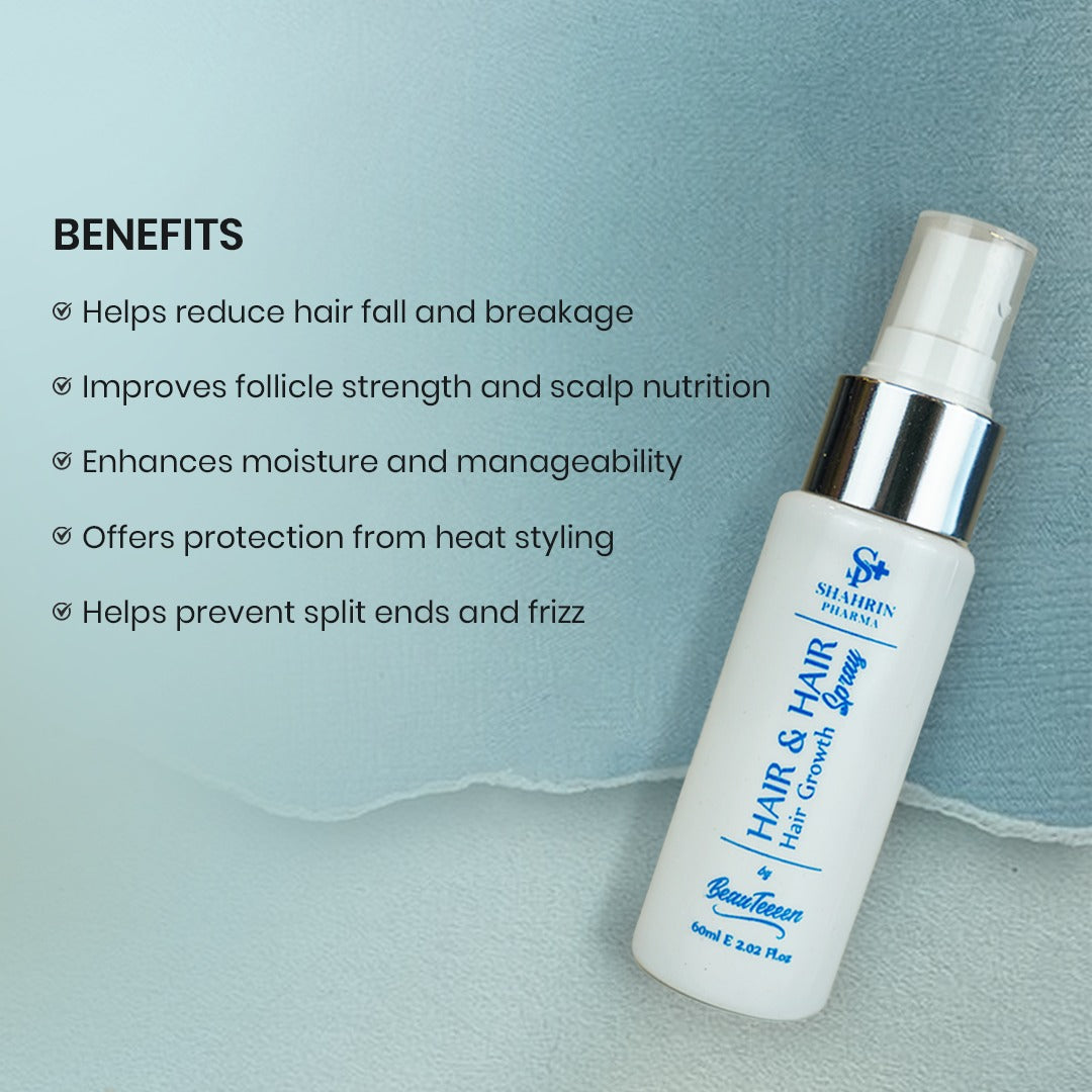 Hair & Hair Spray helps reduce fall, strengthen hair, and deeply nourish your scalp using essential nutrients and lightweight hydration.